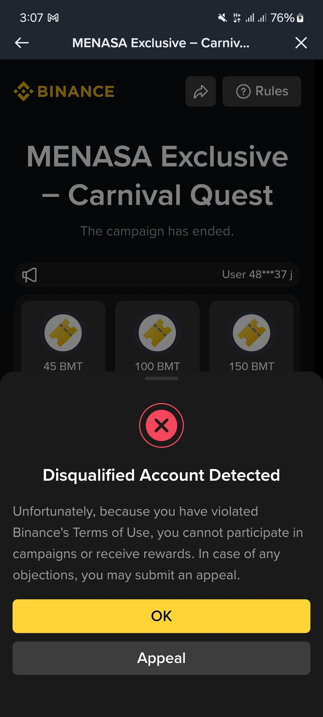 I think this is the reason for my account is disqualify I open one more account in my same device but I cannot any violation and miss behaviour and abnormal activities so anyone please help me to solve this please please I cannot receive or reward I recently join one campaign and win all week but Binance customer telling me I cannot receive a reward me brother and sister please help me to solve. I appeal to and three time but I fail.