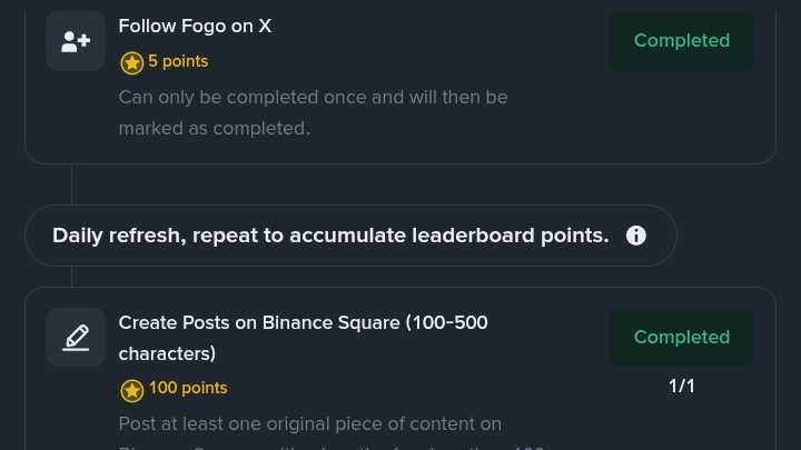 Post at least one original piece of content on Binance Square, with a length of no less than 100 characters and no more than 500 characters. The post must mention the project account @fogo, tag token $FOGO, and use the hashtag #fogo. The content must be strongly related to Fogo and must be original, not copied or duplicated. This task is ongoing and refreshes daily until the end of the campaign and will not be marked as completed.