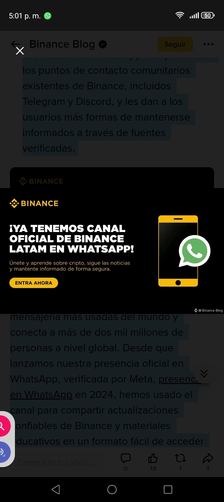 Cómo verificar un canal oficial de WhatsApp de Binance