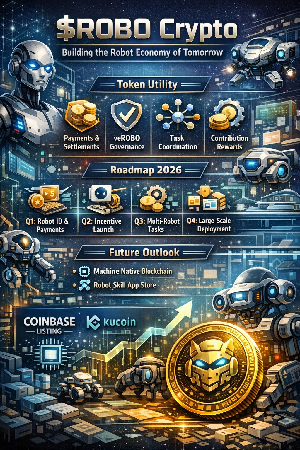$ROBO’s inclusion in major exchange listing roadmaps like Coinbase and KuCoin signals growing institutional attention, although short-term trading liquidity and price action remain speculative. (followin.io)
