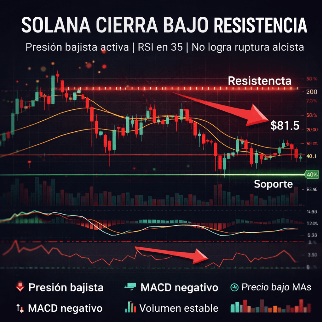$SOL cierra la sesión manteniéndose bajo zona de resistencia clave, sin lograr ruptura con volumen de confirmación.