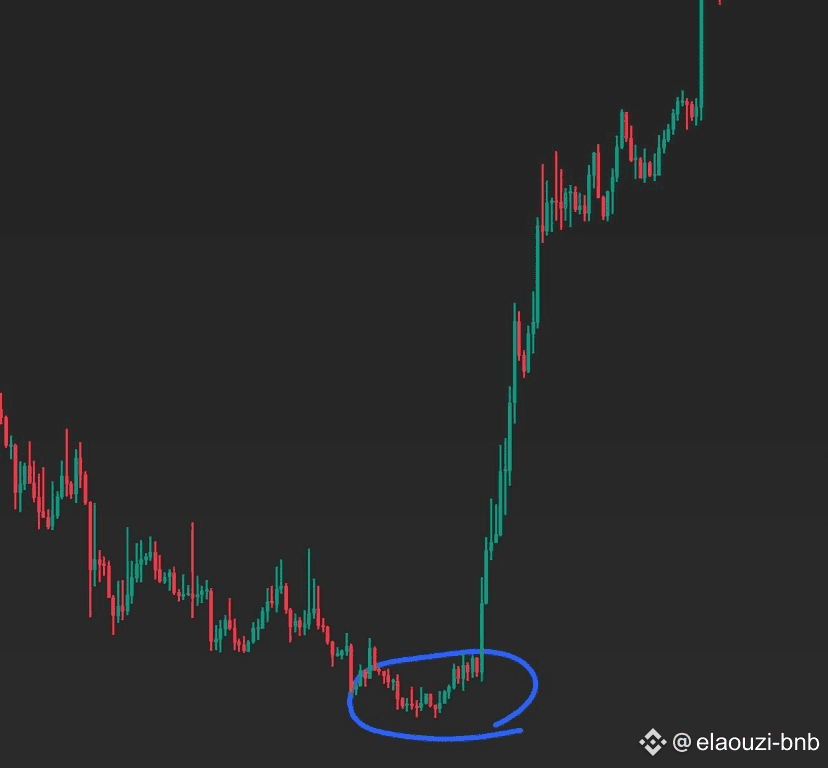 خلينا نقارنها بوضعنا الحالي ..شايف الدايرة الزرقاء دي شايف ازاي صغيرة بالنسبة لحجم الصعود الدايرة الزرقاء اللي انت شايفها صغيرة دي استغرقت حوالي 8 شهور ( منطقة الخروج من القاع ) صعود (20%) ثم هبوط صعود (1x) ثم هبوط لاختبار القاع ..ملل وتطفيش ولكودة