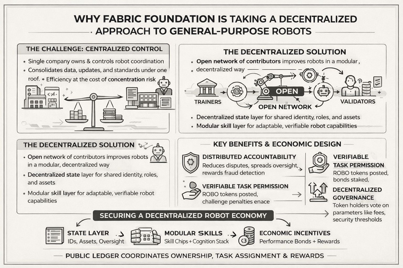 What caught my attention is a simple question: if general-purpose robots are going to work across many environments, make decisions under uncertainty, and rely on skills contributed by many different people, why should that future be organized by one company instead of an open network? I keep returning to that because robotics seems to be reaching a point where control matters as much as capability. A robot is not just software on a screen. It can move through the physical world, interact with property, affect safety, and shape labor. Once that becomes true, the coordination model becomes part of the product itself.