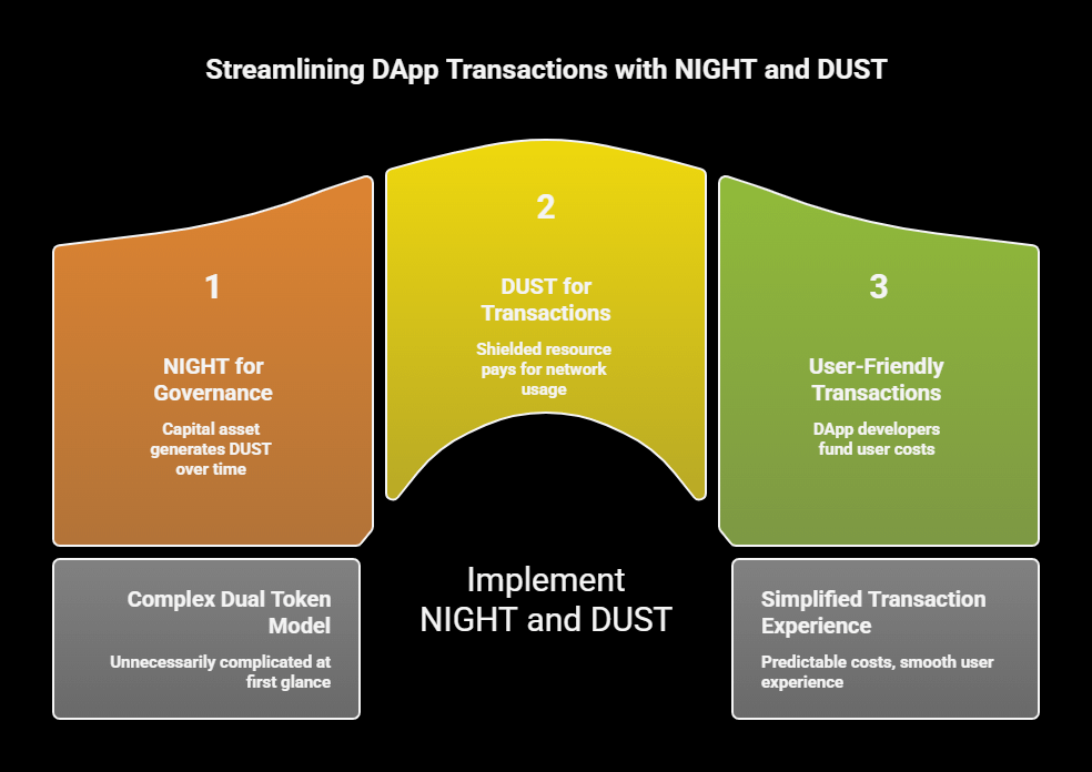 When I first read about the dual token model I thought it sounded unnecessarily complicated but the more I've sat with it the more it actually clicks. NIGHT is the governance and capital asset. Holding NIGHT automatically generates DUST over time. DUST is the shielded non transferable resource that pays for transactions and smart contract execution on the network. It recharges like a battery after being used.