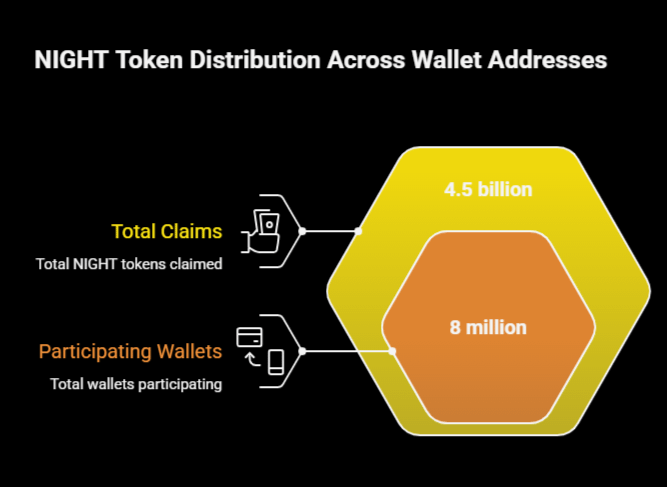The NIGHT token went live on Cardano back in December 2025 and it set off what turned out to be one of the largest token distributions in blockchain history. The Glacier Drop and Scavenger Mine phases combined pulled in over 4.5 billion NIGHT claims across more than 8 million participating wallet addresses. That participation number is genuinely wild when you think about it. For context the Scavenger Mine phase alone was open to anyone with a laptop and an internet connection and still managed to register that kind of volume.