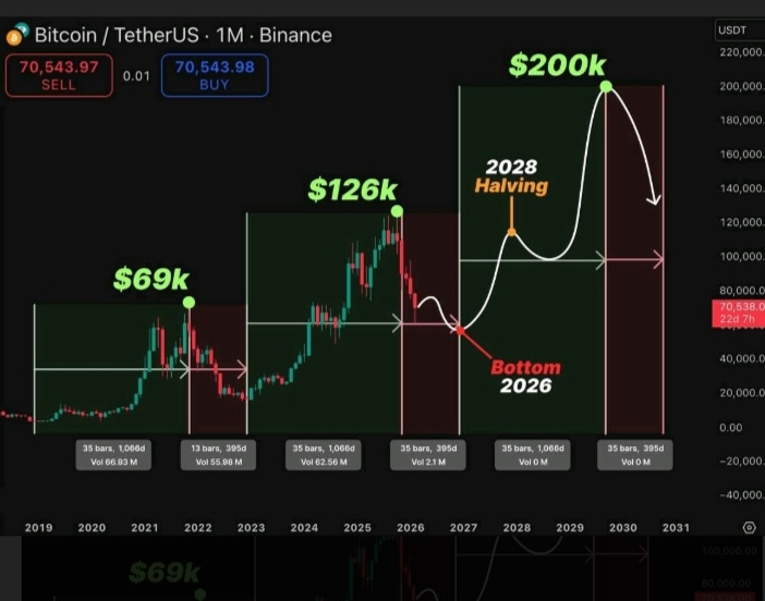📈 Historically, these cycles are closely connected to Bitcoin halving events, which reduce supply and often trigger long-term bullish momentum.