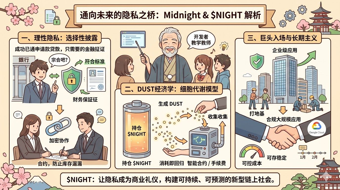 当 Google Cloud 宣布成为其验证节点的那一刻,圈内其实产生了一种微妙的震动。大厂入局,看的不是那一丁点质押收益,看的是这套系统能否承载合规的、大规模的企业级应用。这意味着,Midnight 已经跨过了“小圈子自嗨”的门槛,拿到了进入主流商业战场的入场券。