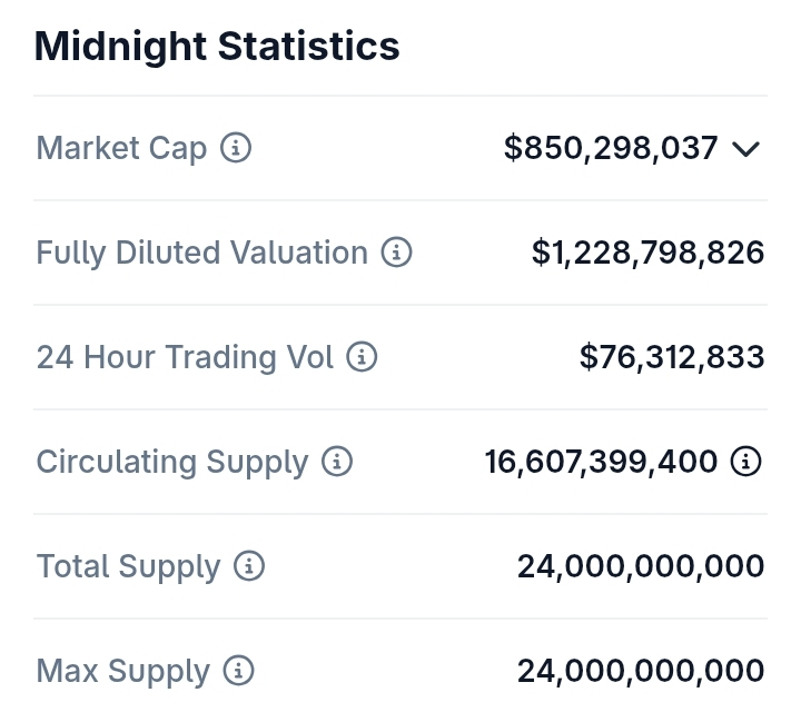 The trading volume of Midnight (NIGHT) is $75+ million in the last 24 hours, representing a -45.50% decrease from one day ago and signalling a recent fall in market activity.
