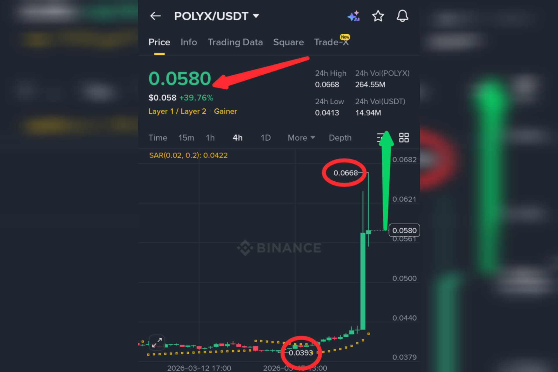 $POLYX just ripped from $0.0413 to $0.0668, now trading at $0.0580 with +39.76% gain. Volume exploded to 264.55M POLYX and $14.94M USDT – a massive surge in market activity. The catalyst? RWA sector rebound combined with a spot-driven short squeeze. Smart money positioned early. The crowd is chasing now. 🚀