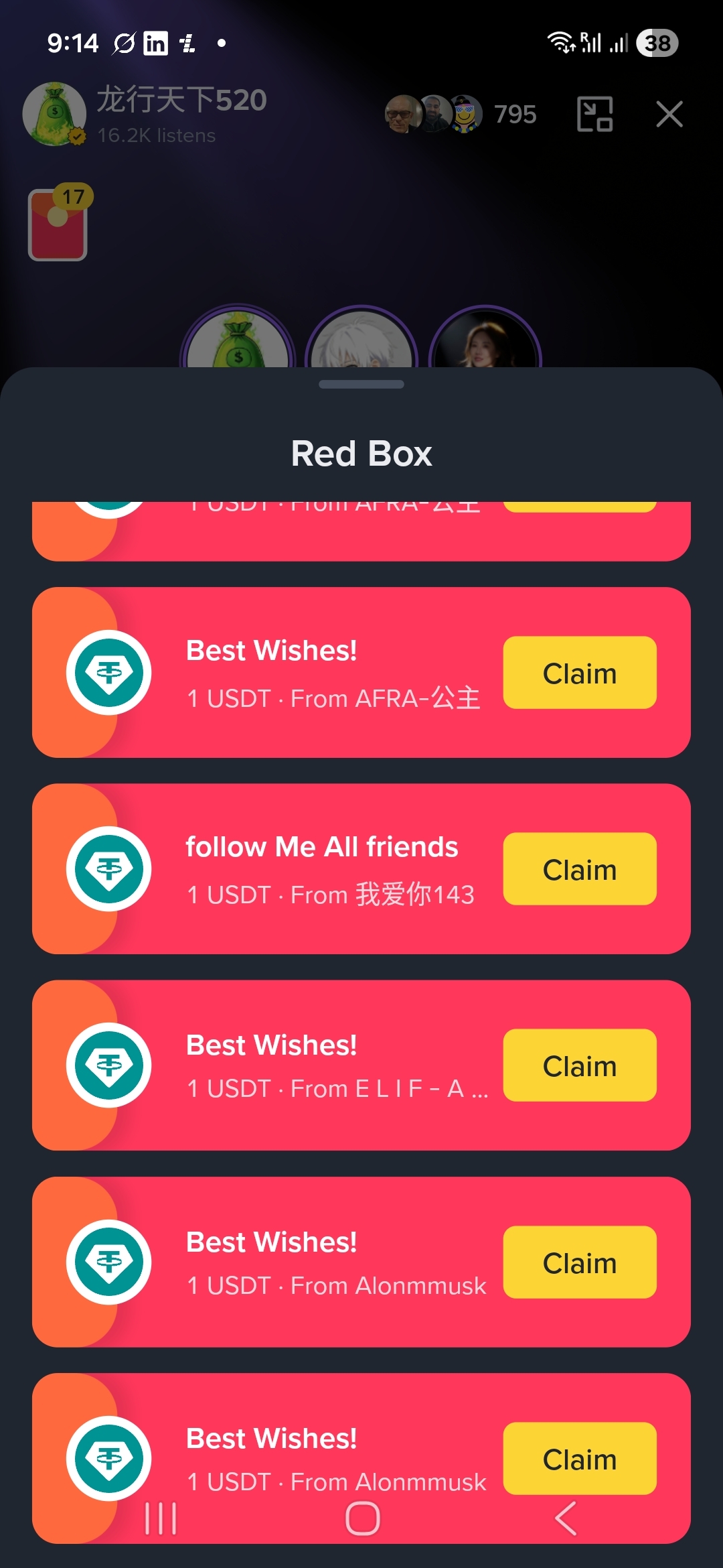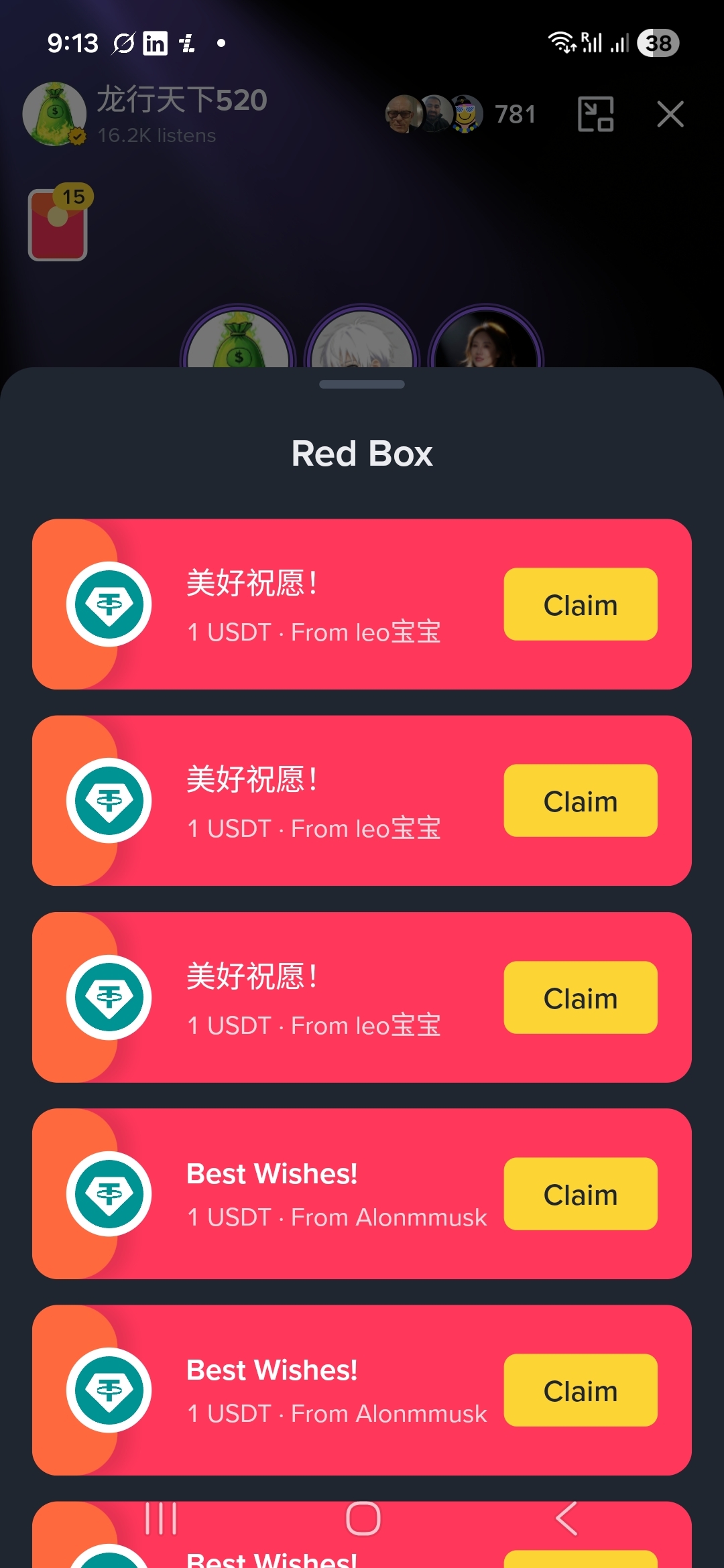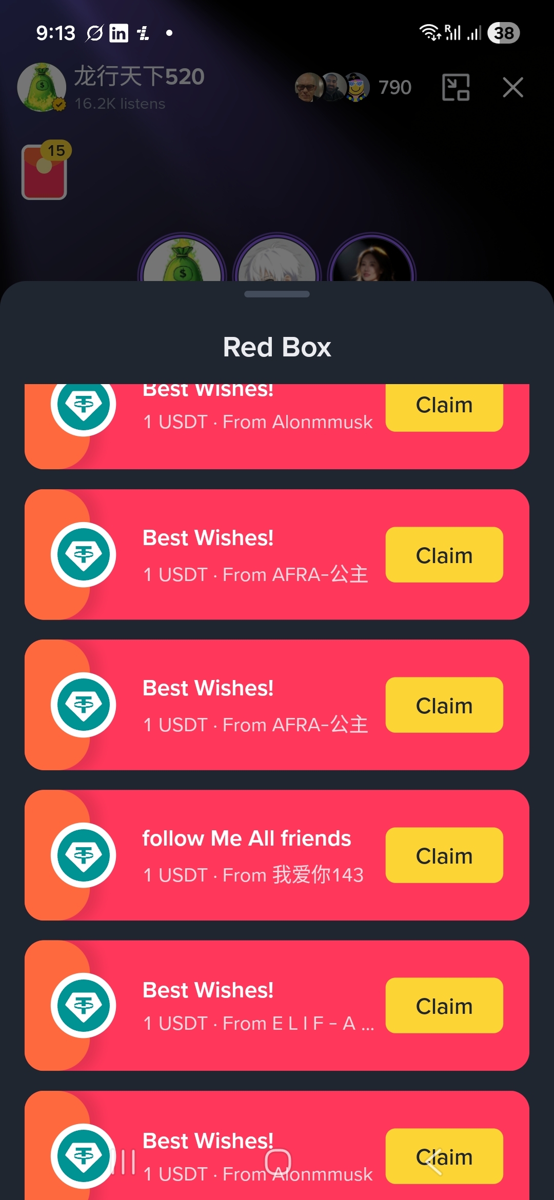 - Most of the 1 USDT "Best Wishes!" packets (from names like Alonmmusk, AFRA, leoBaoBo, etc.) were empty / manipulated / fake: