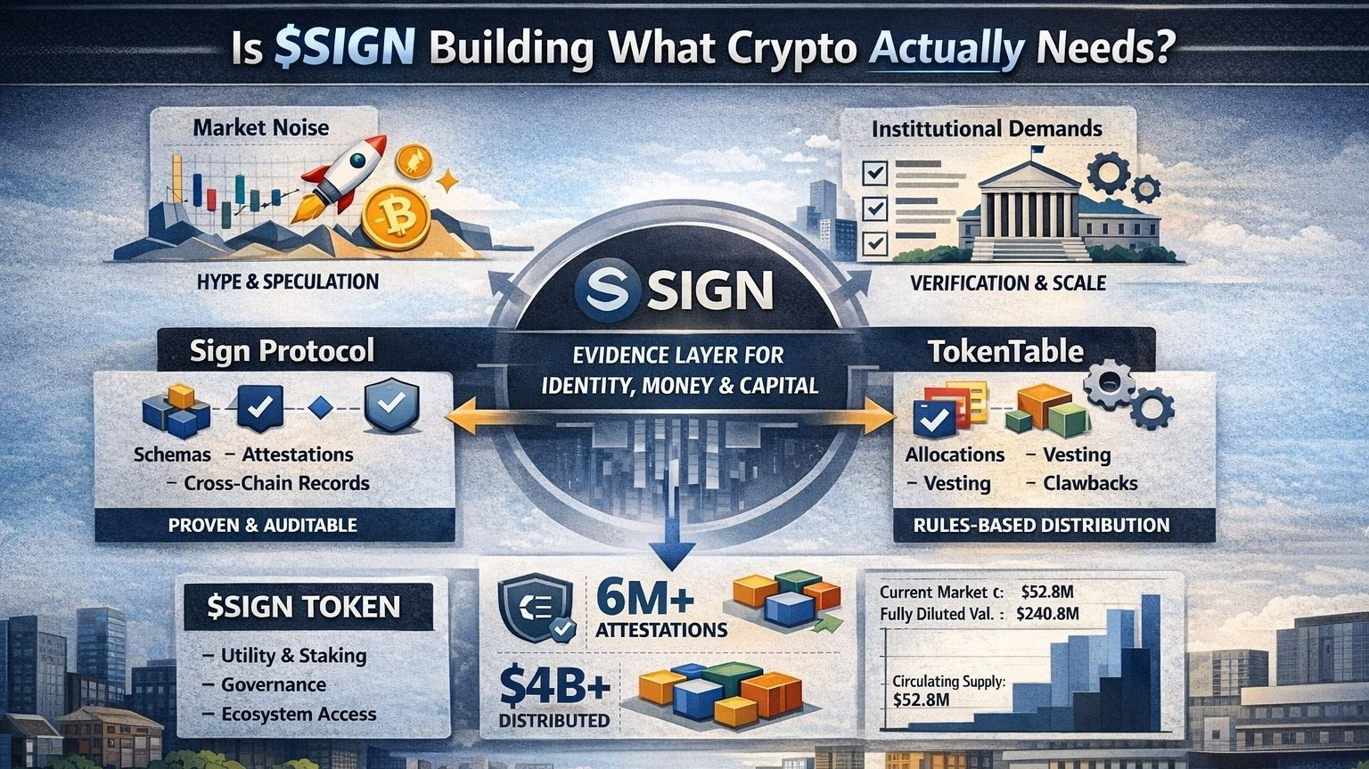 That’s why $SIGN caught my attention, though not for the usual reason. I didn’t look at it and think, here’s the next big thing. It felt more like I was looking at a project built around a quieter shift already happening: the market is slowly moving from “put it onchain” to “make it verifiable, portable, and inspectable.” That is a different instinct. It’s less ideological and more administrative, which sounds boring until you realize administration is where trust either hardens or breaks. Sign’s own docs now frame the ecosystem around sovereign-scale infrastructure for money, identity, and capital, with Sign Protocol positioned as the shared evidence layer and products like TokenTable sitting on top of that stack.
