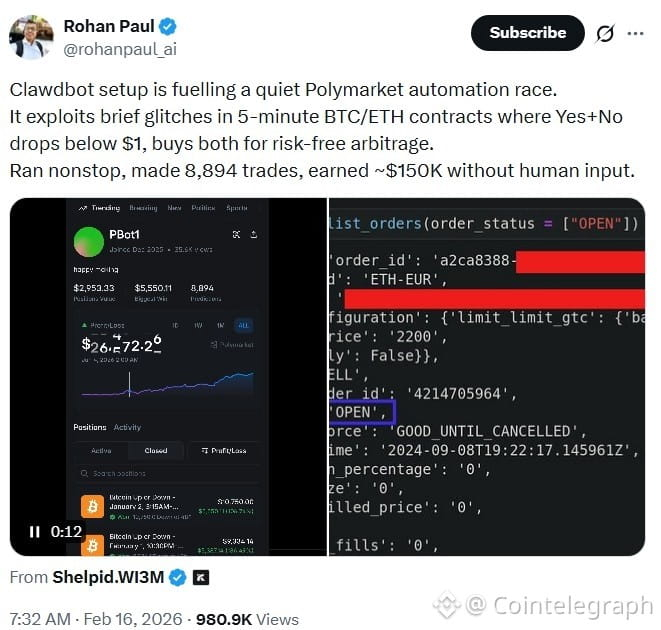 The rise of prediction markets has also seen opportunities such as what Coelho calls “latency arbitrage,” which rely on short windows too narrow for humans to manually target. He told Cointelegraph: