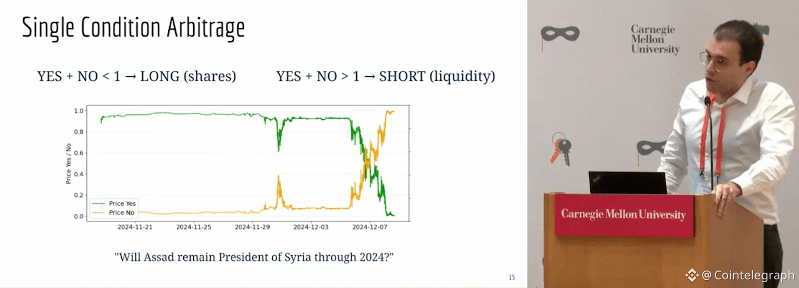 Arbitrage opportunities can show up as brief mispricings, from outcomes that temporarily fail to sum up to 100%, to short delays in how quickly markets react to new information.