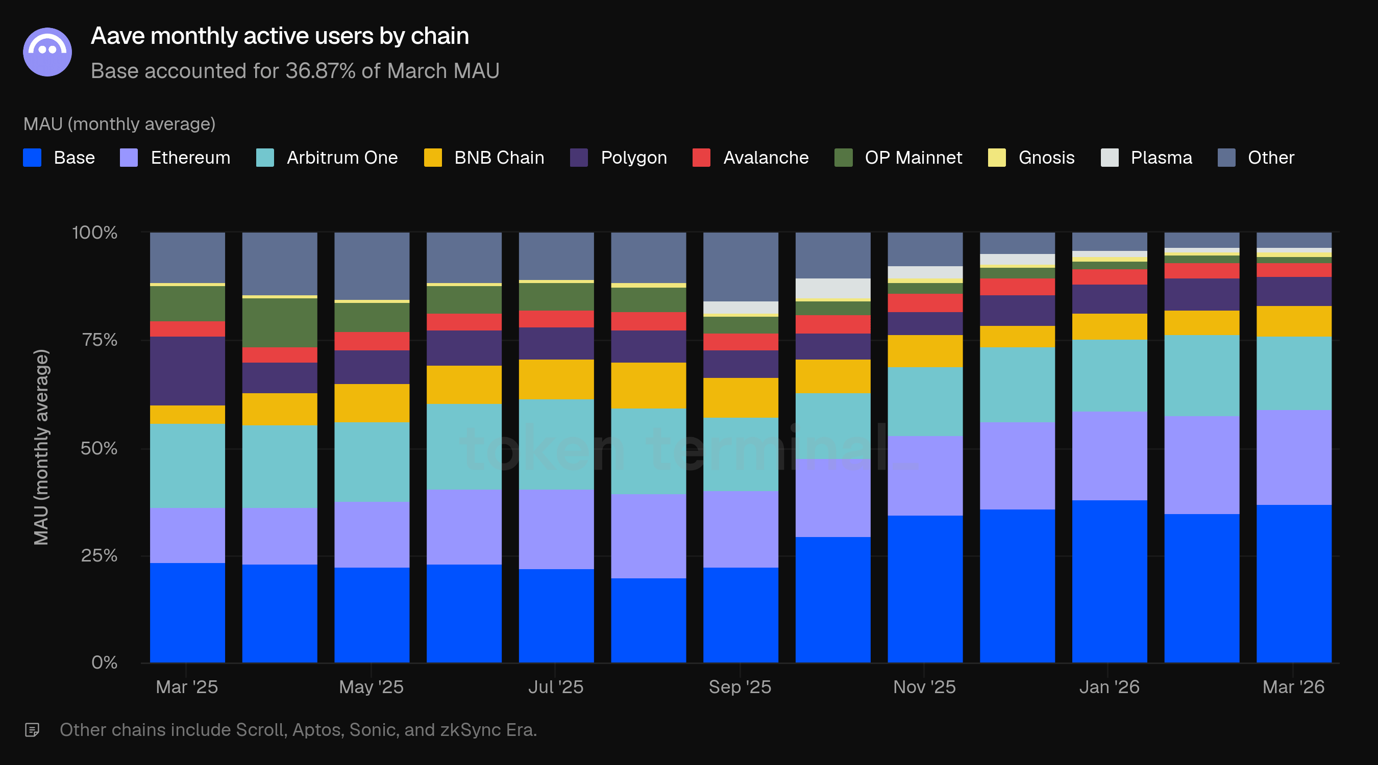This report is published monthly and produced leveraging Token Terminal's end-to-end onchain data infrastructure. All metrics are sourced directly from blockchain data. Charts and datasets referenced in this report can be viewed on the corresponding Aave March 2026 Report dashboard on Token Terminal.