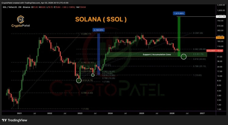 Pero ojo, que aquí es donde la gráfica se pone interesante y nos pide cabeza fría. A pesar de esa posible amenaza de venta, Solana está sentada justo encima de una "red de seguridad" técnica súper importante: los niveles de Fibonacci entre los $61 y los $42. Para los que están empezando, imaginen que el precio tiene un piso de concreto reforzado en esa zona; es el punto donde históricamente los compradores dicen "de aquí no pasa" y empiezan a acumular de nuevo. 🏗️🛡️