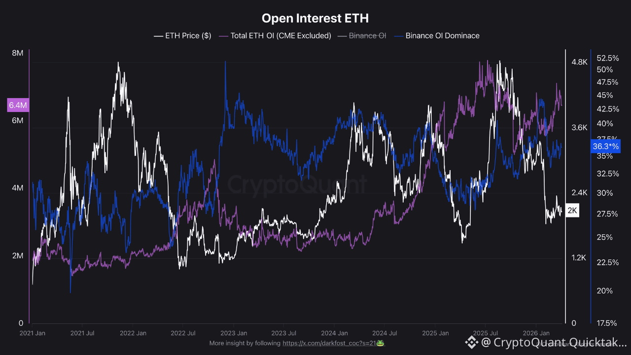 A significant share of this activity comes from Binance, which alone accounts for 2.3 million ETH in open interest, representing roughly 36% dominance in the ETH derivatives market.