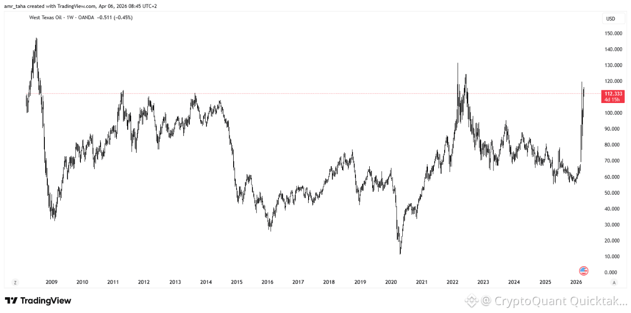 WTI crude is trading near $112, close to the same major resistance zone seen in 2022 when oil moved above $120 per barrel.