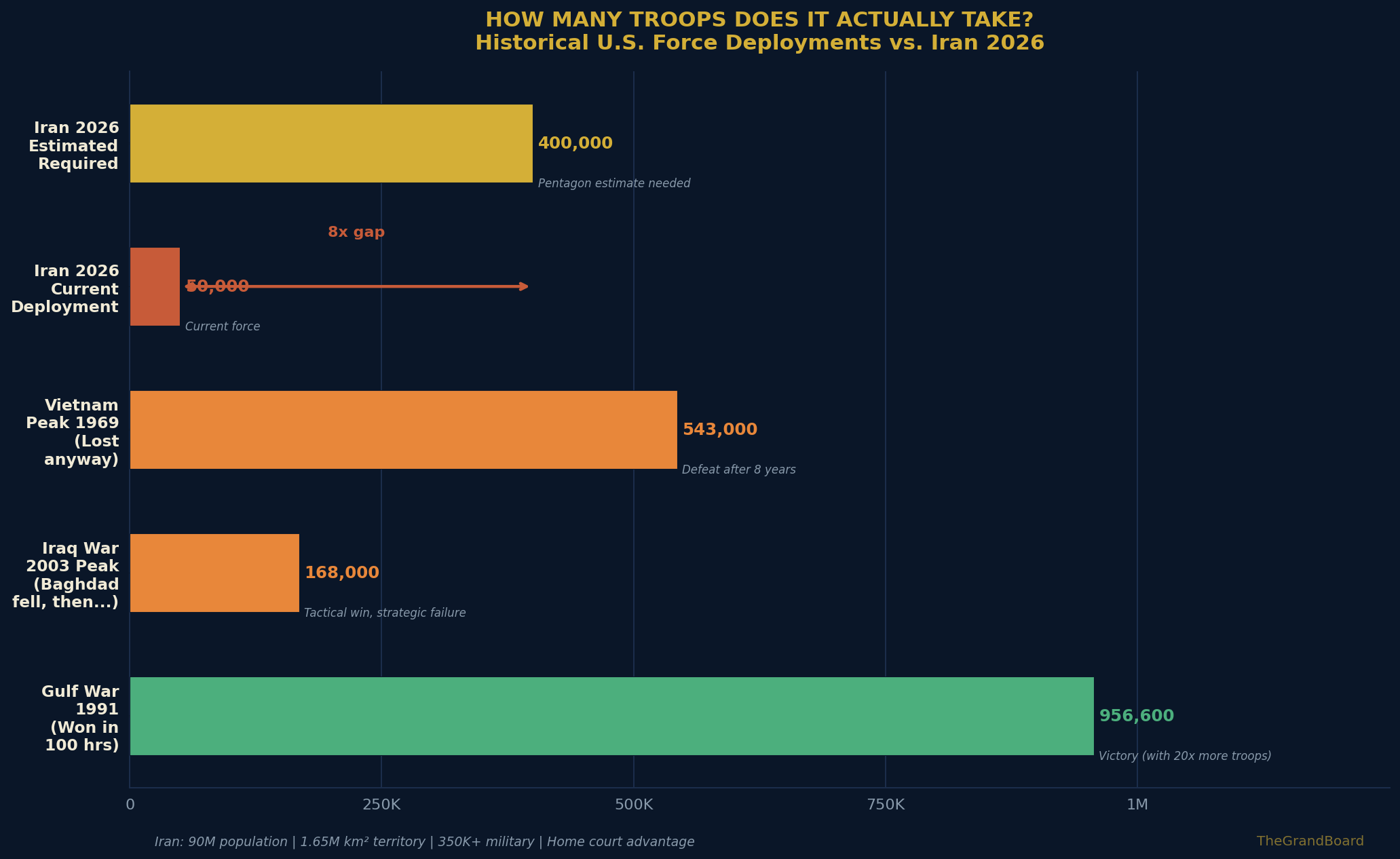 Iran is not Iraq 2003. Iran has a population of 90 million (Iraq 2003: 25 million), 350,000 standing army plus 190,000 Revolutionary Guards, strategic depth of 1.648 million square kilometers, thousands of ballistic missiles, hundreds of thousands of drones — and critically, a home court.