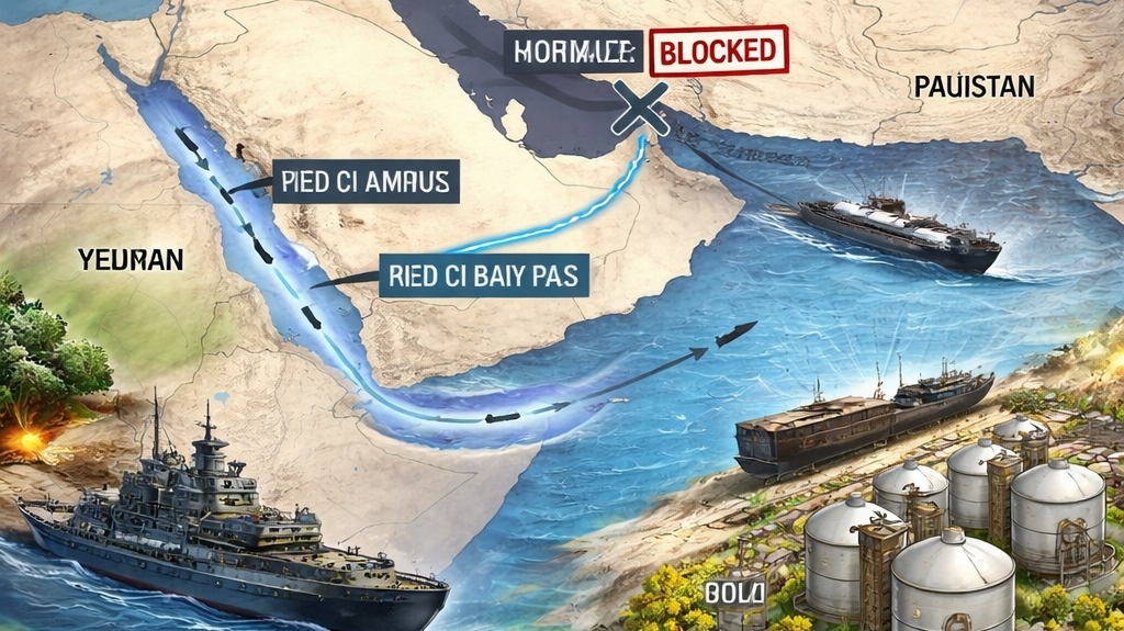 This image shows that if the Strait of Hormuz is closed for any reason, the global oil supply could be severely affected. The closure of this route, located near Iran, could shake not only the Middle East but also the entire world economy.