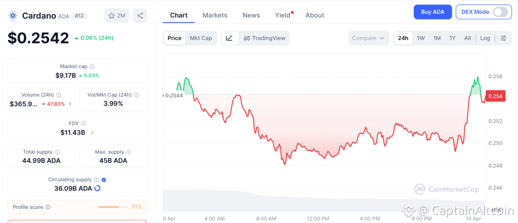 ADA trades at $0.254 on April 9 according to CoinMarketCap, well below the $0.27 level it needs to clear before any real momentum builds toward the $0.29 target after that. The Midnight launch is genuinely bullish long-term, and the whale accumulation running alongside it confirms that informed capital is buying this quietly while retail looks elsewhere.
