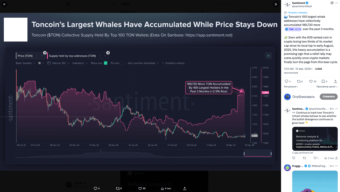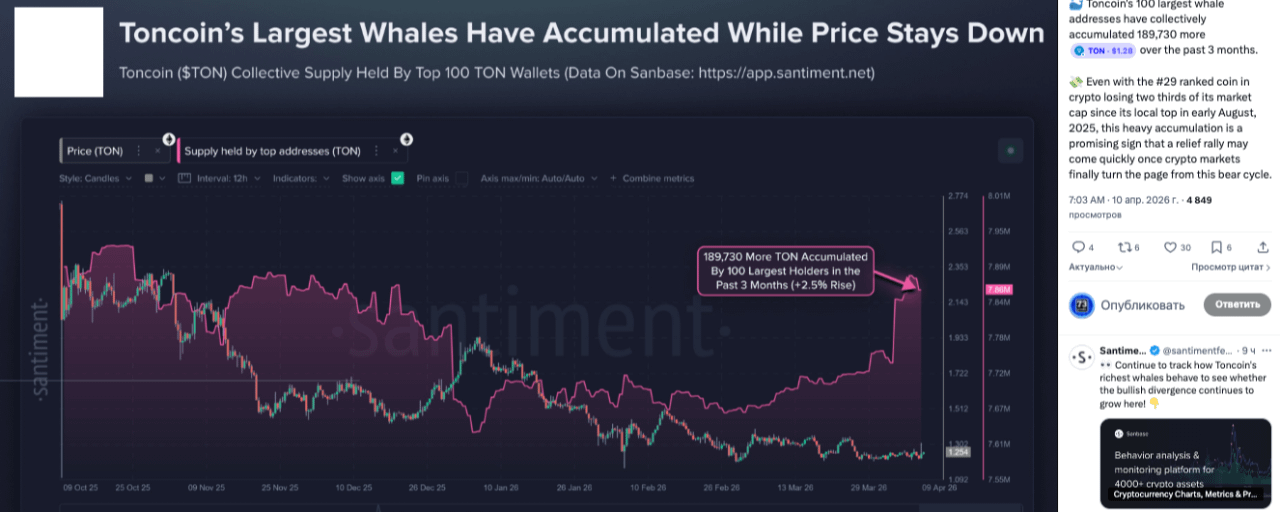 Santiment: киты накапливают TON, пока цена все еще движется вниз.