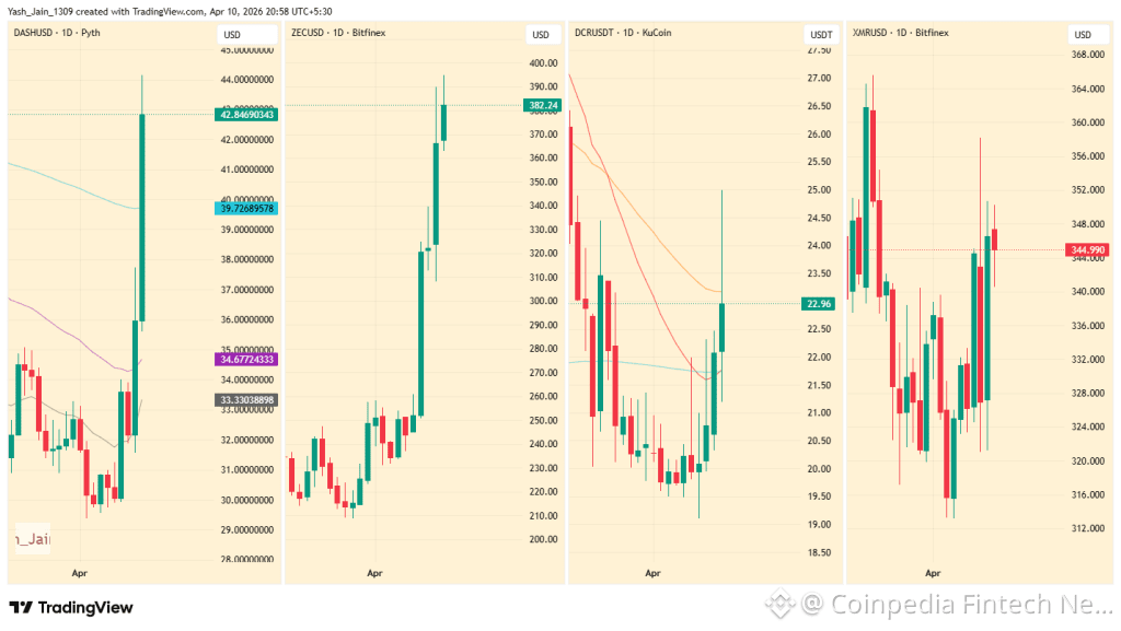 Privacy coins are back and not quietly either. Since April 4, the privacy coins surge has been hard to ignore, with tokens like DASH, ZEC, DCR, and XMR snapping out of their long consolidation phases and ripping higher. The timing? Not random. The spark came from a geopolitical twist, the April 8 U.S.- Iran ceasefire news acted as major trigger which flipped the market into full-blown risk-on mode.