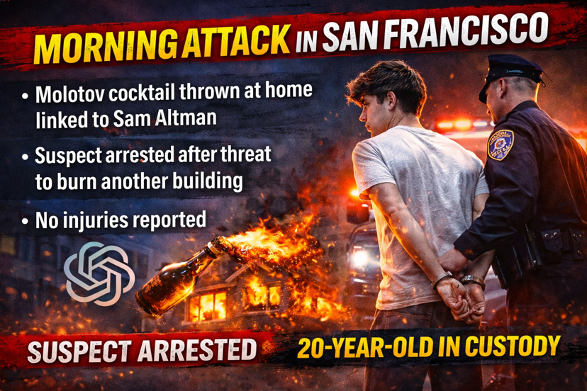 OpenAI said on Friday that San Francisco police arrested a suspect accused of throwing a Molotov cocktail at the home of its CEO, Sam Altman, and making threats outside the artificial intelligence startup’s headquarters.