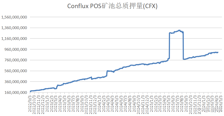 本周PoS矿池的质押量增加734万个cfx,重返9亿个cfx。