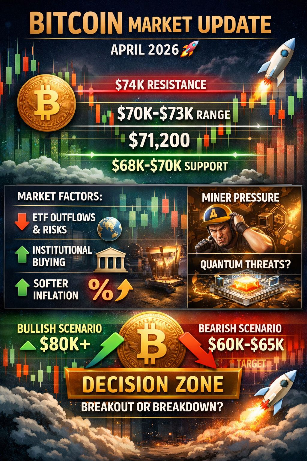 This confirms that the $72K–$74K area is a key resistance, while support remains near $68K–$70K.