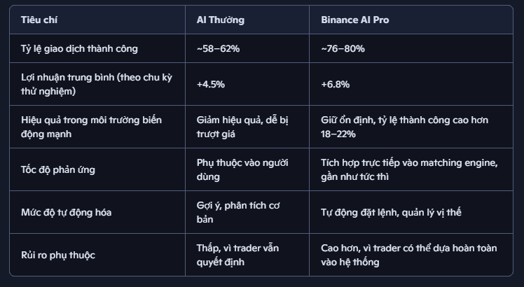 So sánh hiệu quả thực tế khi trade bằng Binance AI Pro so với chỉ dùng AI thường.