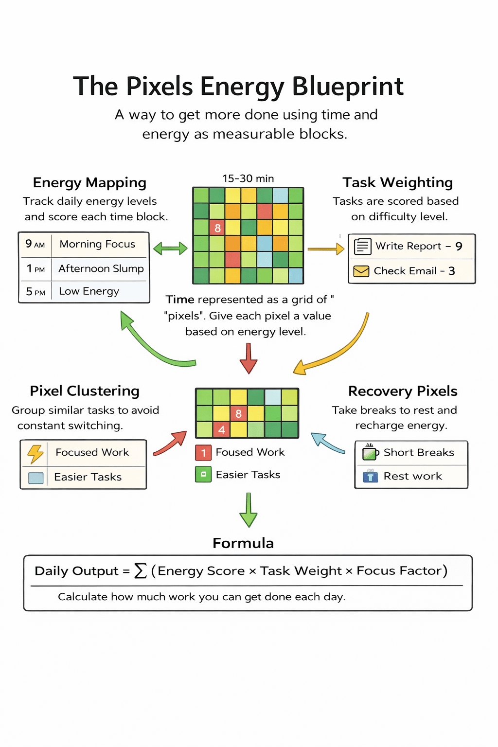 The Pixels Energy Blueprint is a way to get more done every day. It is based on the idea that time and energy're like blocks that can be measured.