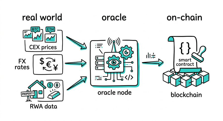 So you need a bridge: something that brings real-world data on-chain and hands it to the contract as truth.