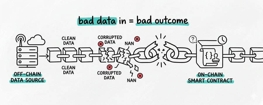 And here's where it gets uncomfortable. Most contracts have no way to verify whether the data they receive is accurate at the source. They can check that data arrived in an expected format. They can flag extreme deviations. But if the feed itself is corrupted upstream, those checks don't save you.