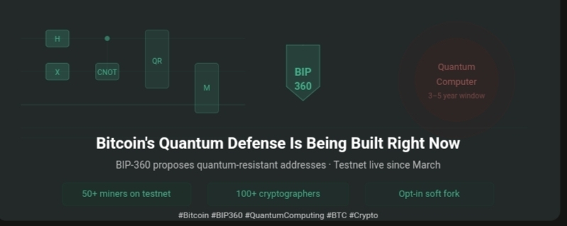 BIP-360 — also called Pay-to-Quantum-Resistant-Hash, or P2QRH — is a formal proposal to introduce quantum-resistant address formats to the Bitcoin network. A dedicated testnet launched in March 2026, attracting over 50 miners and 100 cryptographers for initial trials. The upgrade is opt-in, meaning existing wallets and transactions remain unaffected, but adoption would require broad community consensus via a soft fork.
