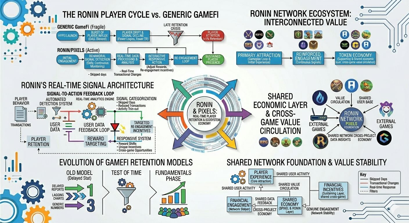 For developers building inside the Ronin network, that infrastructure changes the foundation of the entire experience. Retention becomes something the ecosystem actively helps manage, rather than a crisis discovered weeks later when the charts start falling.