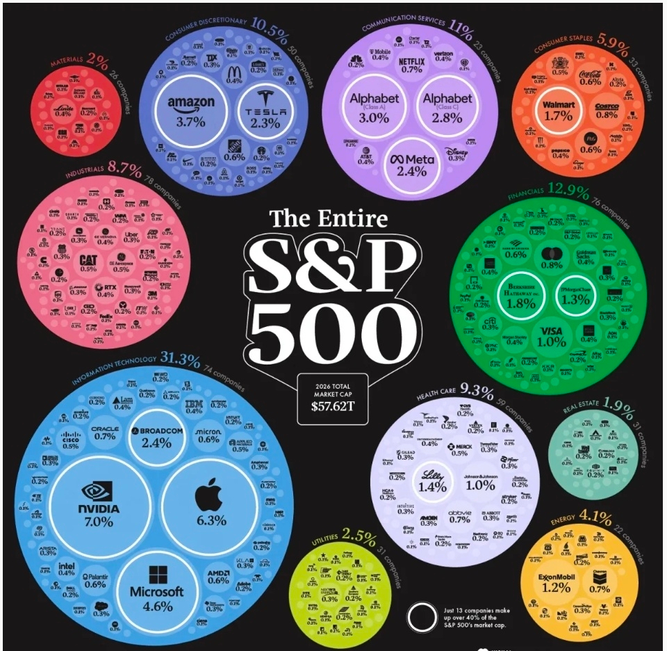 Nvidia, Apple, and Microsoft alone make up about 18% of the $57.6 trillion index.