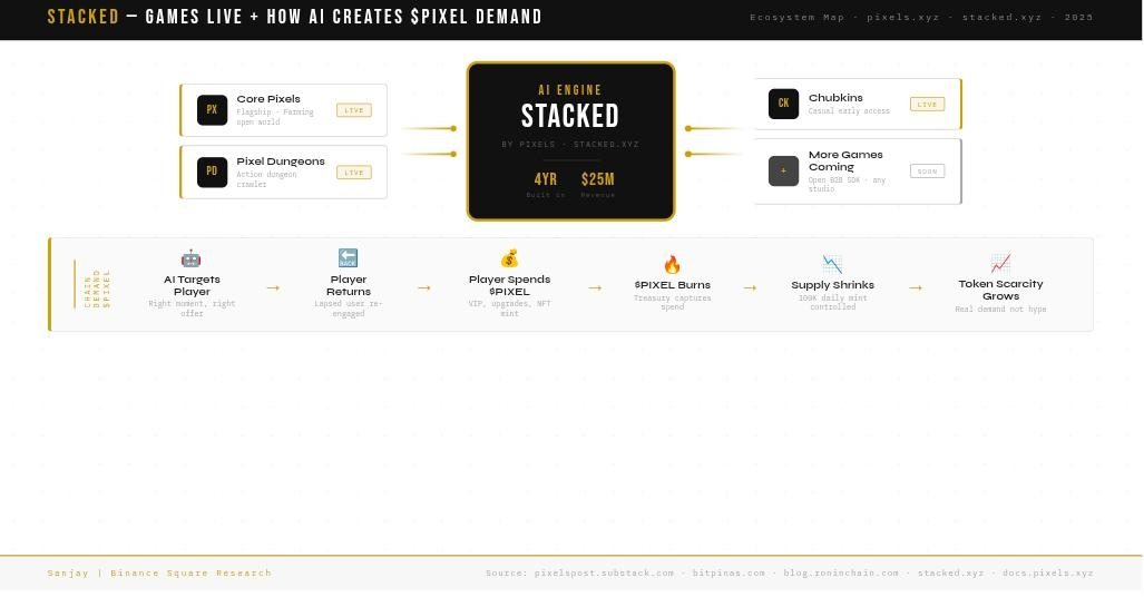It means that AI is now working 24 hours a day, to keep players in the ecosystem longer, spending more and coming back more often. EveRy time Stacked bring a player back to any game in the netwOrk, that player consumes more PIXEL through upgrades, VIP passes, and in game purchase. Demand for the token does not come from hype anymore. It comes from an AI that is constantly optimising for real beleivable player behavior.