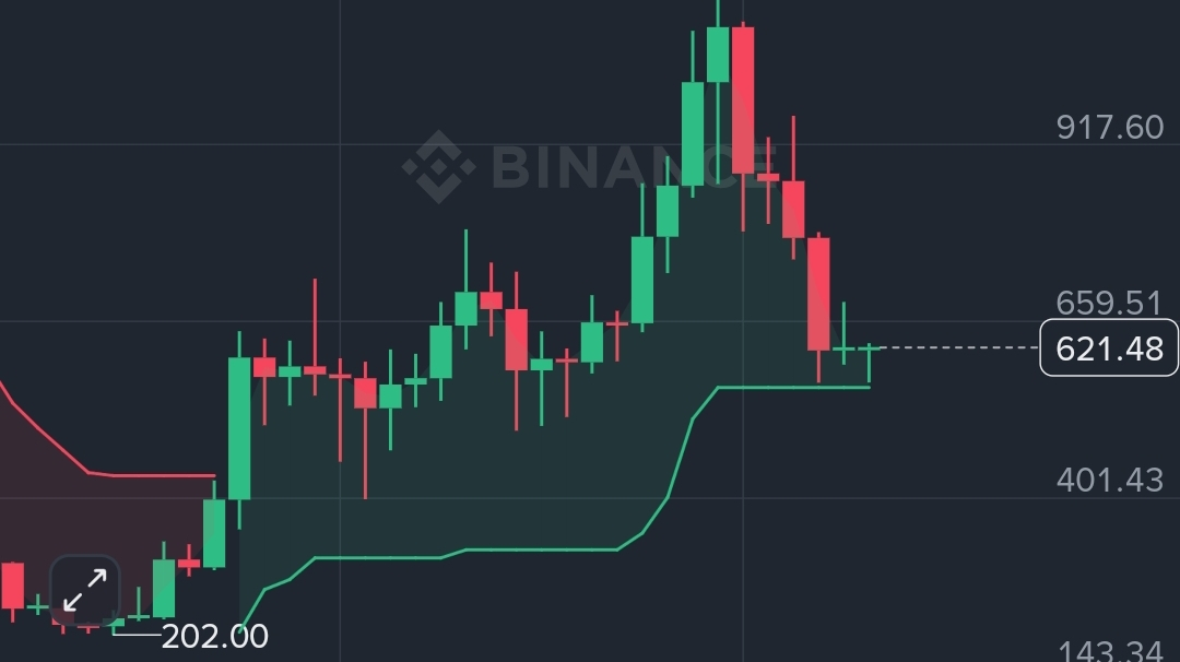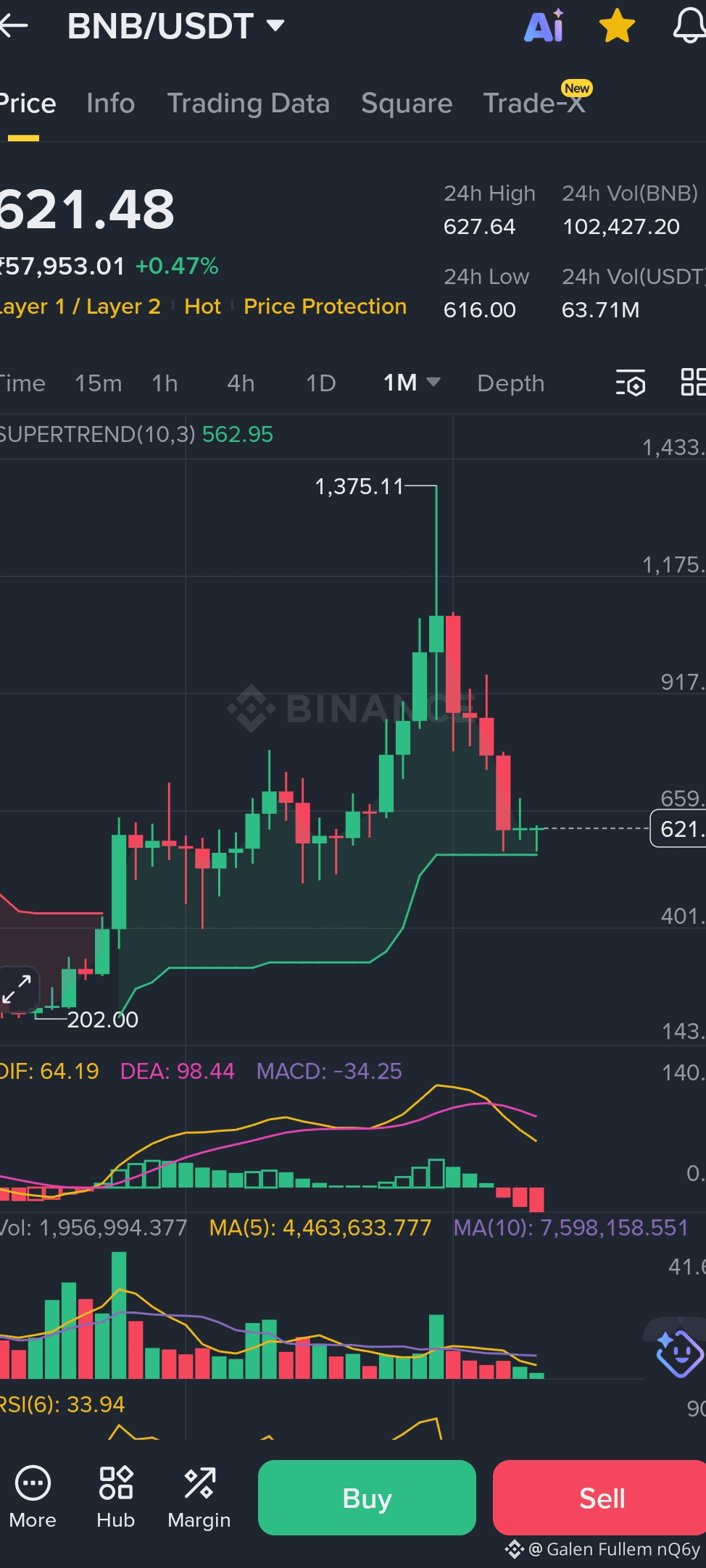 1. *Supertrend*: $562.95 pe green = Monthly trend abhi bullish hi hai. Price uske upar hai to long term hold ka structure intact hai... ₹Bnbusdt..