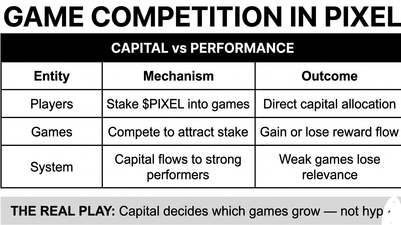 the core mechanism behind this is simple — games don’t just attract players they compete for capital in the system players stake $PIXEL into specific gamesthat stake is not passive