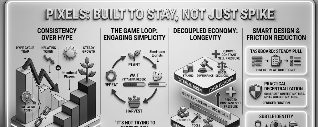 While other Web3 games were chasing hype cycles, inflating tokens, and collapsing under their own emissions, Pixels just kept doing the unglamorous work. Adjusting systems. Tightening loops. Making sure that when someone logged in today, it felt slightly better than yesterday.