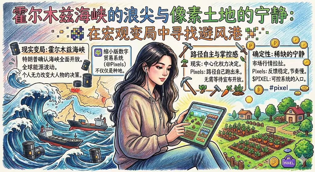 也正是因为这个原因,我突然想到这段时间一直在玩的游戏@Pixels 。很多人把它当成简单的种地游戏,但我换了个视角去看,这个游戏更像是在一个缩小版的数字贸易系统里跑自己的节奏。你会发现里面其实也存在各种“资源通道”,比如某些高级材料的获取路径、任务链的推进顺序、以及玩家之间围绕稀缺资源形成的交换关系,本质上和现实里的贸易路径是有点相似的。