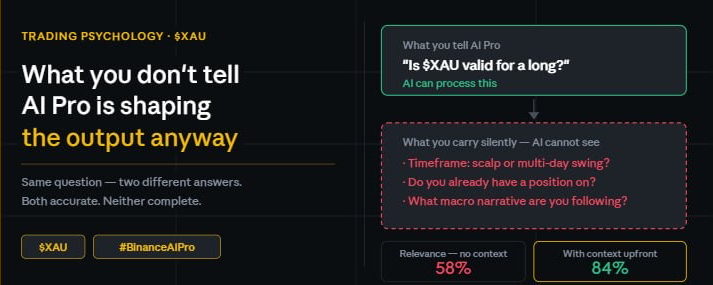 The invisible assumption is not dishonesty. It is the natural product of how obvious your own context feels to you. You have been thinking about $XAU for three days. The narrative is so present that articulating it would feel redundant. But the AI has none of that. Every session begins without it.