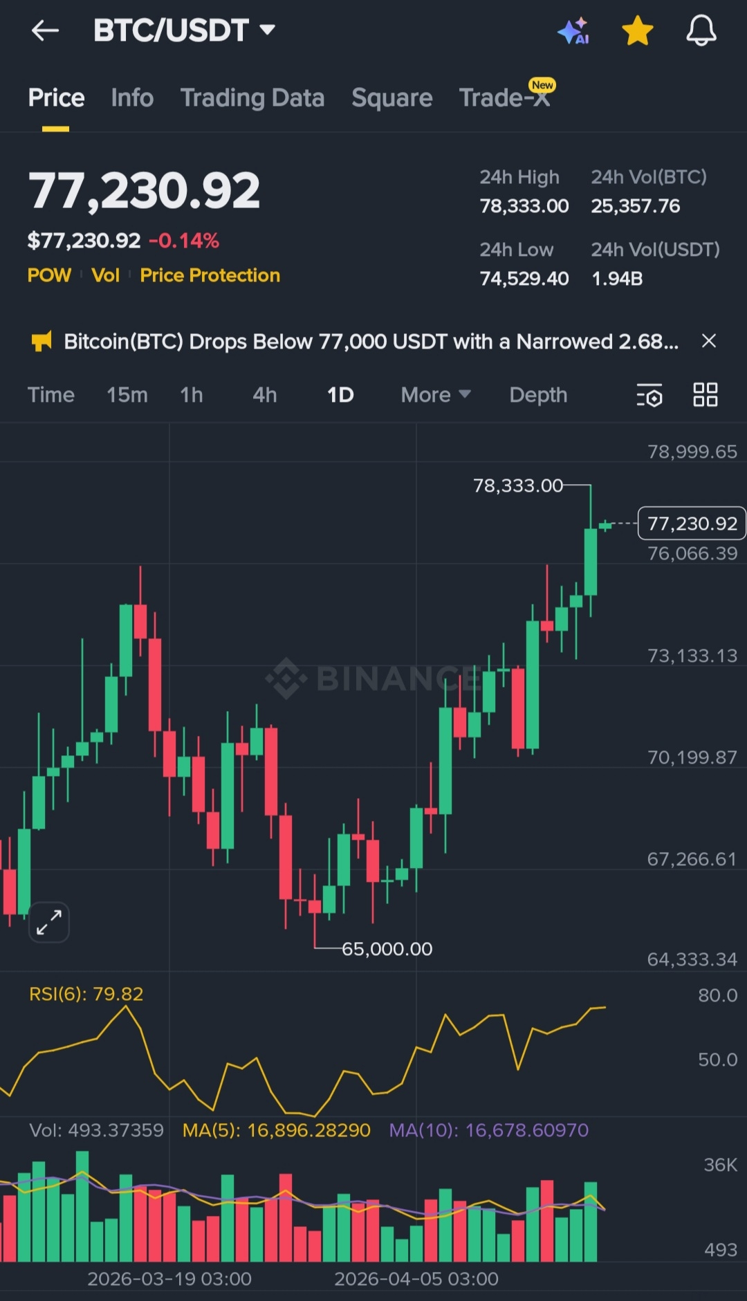 TP1: $77,200 (+3.7%) | TP2: $80,000 (+7.4%)