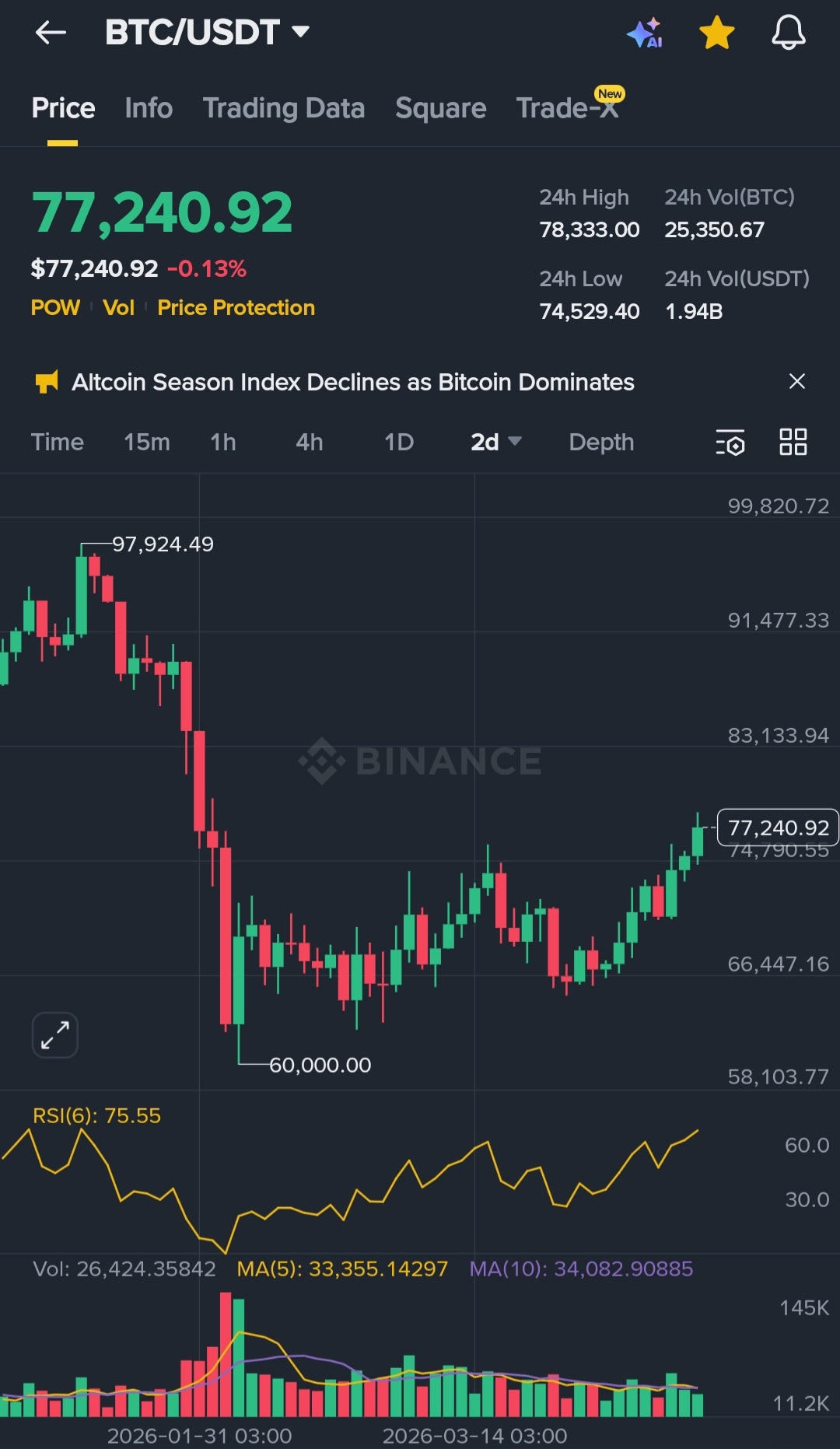 Watch the $76,000 level like a hawk a clean hourly close above it with volume flips the thesis entirely bullish toward $80K.