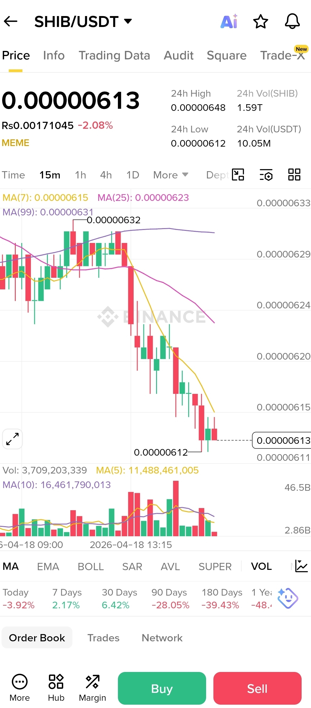 The market for Shiba Inu (SHIB/USDT) is currently showing a short-term bearish trend, with price trading around 0.00000613 and facing consistent downward pressure. Recent candles indicate strong selling momentum after rejection near the 0.00000632 level, while moving averages (MA7, MA25, MA99) are signaling weakness as the price remains below key resistance zones. Despite high trading volume, buyers are struggling to regain control, suggesting caution in the short term. However, the price is approaching a potential support area near 0.00000612, where a bounce or consolidation could occur. Traders should closely monitor volume and breakout signals before making any entry decisions. #SHİB $SHIB