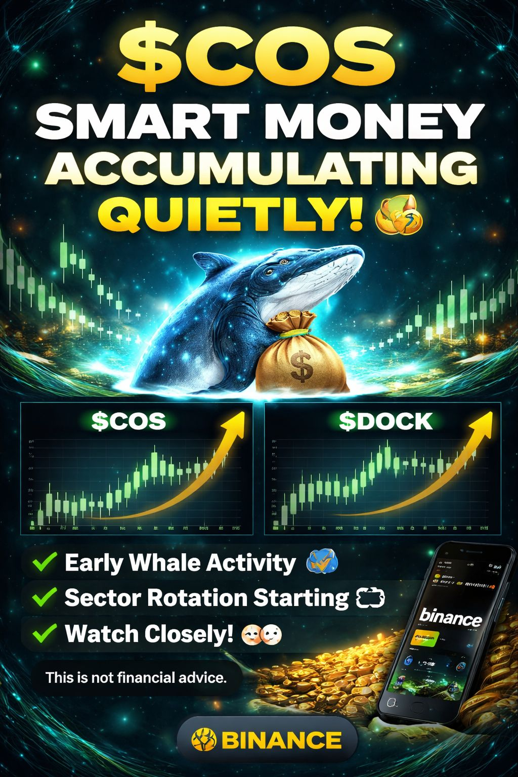 $COS is starting to show quiet but noticeable strength as smart money appears to be accumulating in the background. Volume is gradually increasing, and the charts suggest an early accumulation phase that could lead to a strong breakout if momentum continues. Interestingly, $DOCK is also showing similar behavior, which may indicate a broader sector rotation as capital begins to shift. This kind of silent movement often happens before major price action, so keeping a close eye on both assets could be important. As always, this is not financial advice—manage your risk wisely.#cos $COS