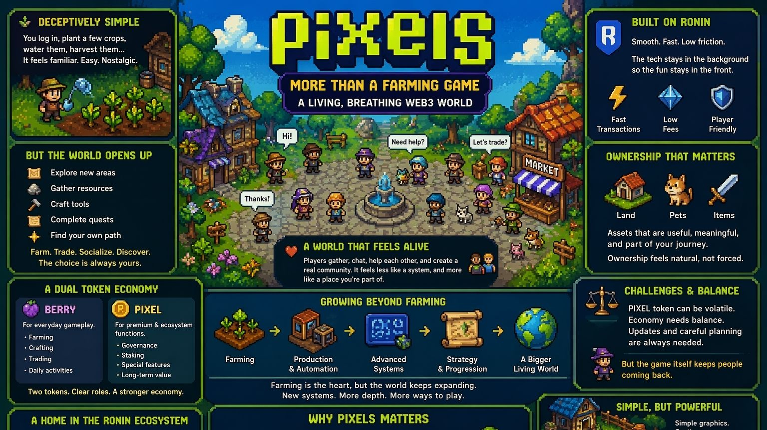 Of course, like any project connected to crypto, it comes with challenges. The PIXEL token can be volatile, and maintaining a healthy game economy is never easy. That side of the experience will always need balance and careful updates. Still, the important thing is that Pixels does not rely only on token excitement to stay relevant. The game itself gives people a reason to return, and that makes a big difference.