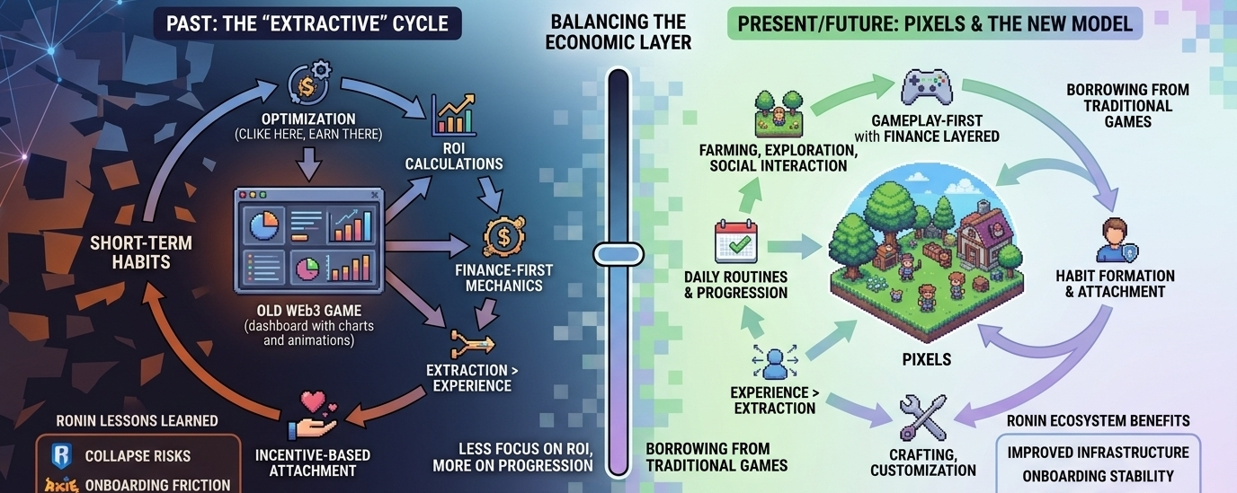 What made me pause wasn’t hype but intention. Pixels at least seemed to be trying something different: a game that behaves like a game first instead of a financial system wearing game mechanics. That shift alone felt worth paying attention to, even if it didn’t guarantee anything.
