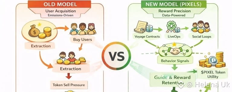 acquisition isn’t scaling GameFi anymore, it’s just masking churn with emissions. I’ve been watching Pixels take a different route. It’s a farming MMO, but the system is shifting toward reward precision. Exploration Realms require Voyage Contracts bought with $PIXEL , LiveOps continuously reshapes player behavior through real time incentive tuning, and even social loops start turning players into distribution channels. Rewards aren’t flat, they begin reflecting how players actually contribute, not just how much they grind.