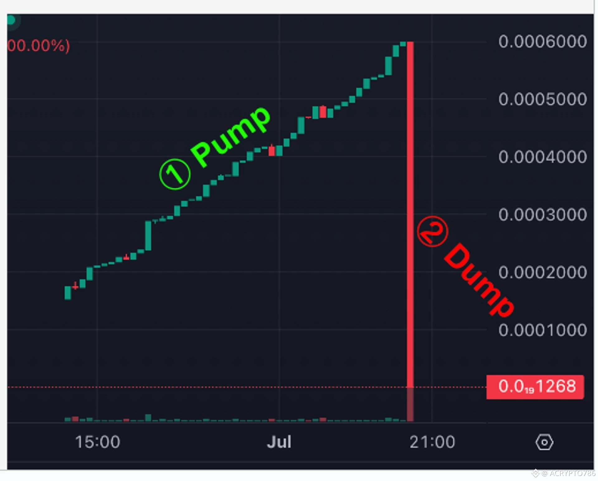 👉 The chart clearly shows a massive pump followed by a sharp dump, which is typical of low-cap or hype-driven tokens.